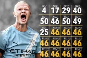体育资讯09月11日讯 据外媒Score90统计,哈兰德职业生涯目前已经打进了310球,如果他想达成C罗正在追求的生涯1000球里程碑,他需要从明年开始到2040年每年都打进46球。